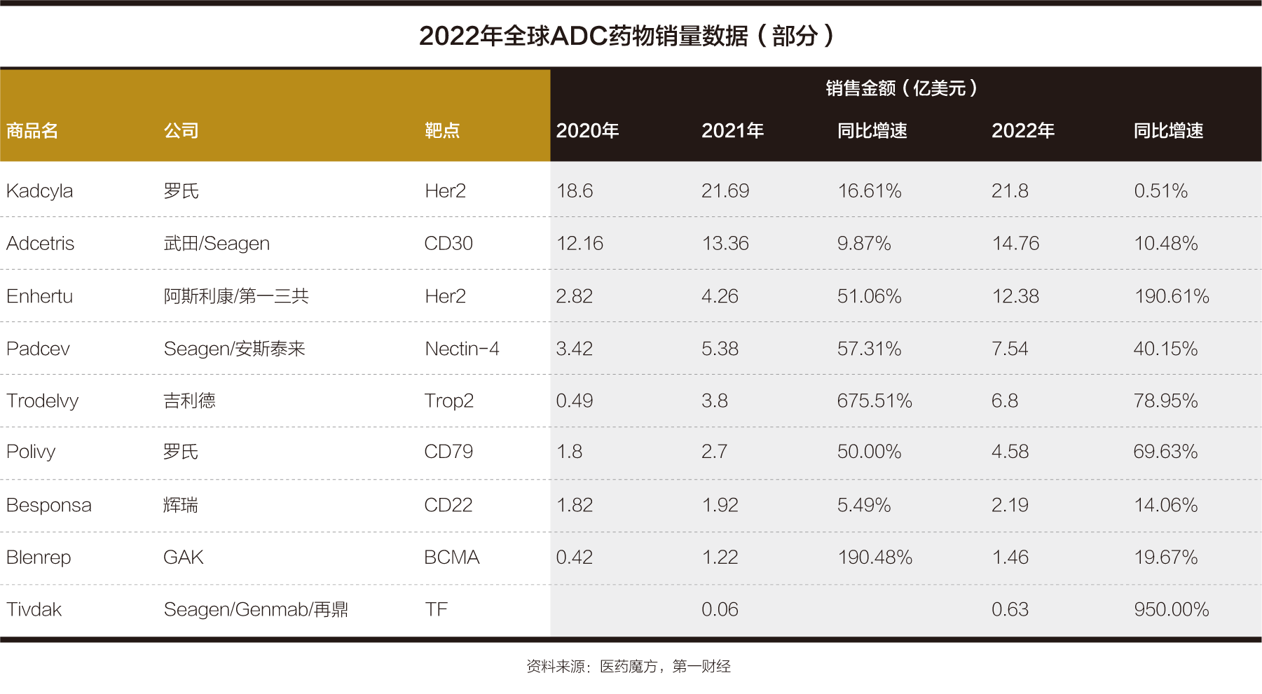 ADC药物此前经数年研发但鲜有突破,2019年以来DS-8201(商品名:Enhertu)在治疗HER2阳性转移性乳腺癌等方面表现出惊人疗效,成为ADC药物研发近年来罕见的重大进展,不仅让ADC药物迅速大火,也令HER2成为目前热度最高的ADC药物靶点。