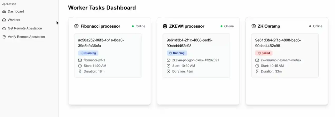 中心化管理:提供完整的 API 接口,支持 ZK-proof 验证任务提交、安全容器部署和全生命周期管理