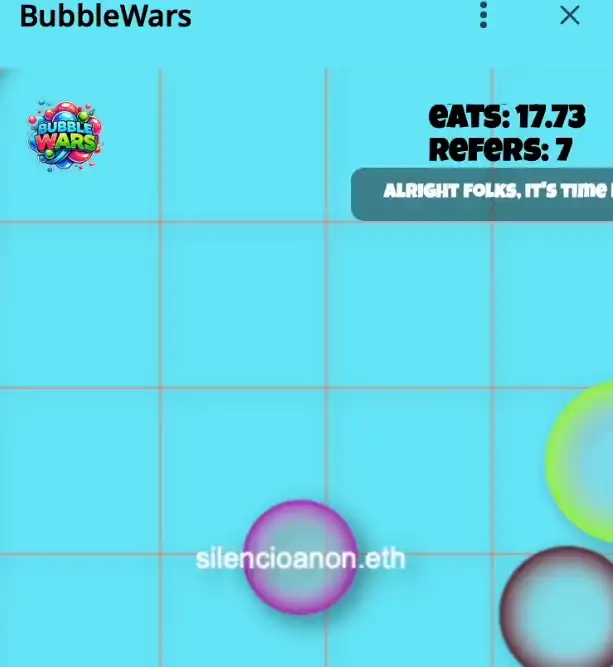 用户体验层面,项目通过 Telegram 实现了一键登录认证,系统会自动为用户创建区块链钱包(EOA),并在 Base 网络上分配专属的 ENS 子域名(*.bubblewars.eth)。这种无缝的用户体验设计大大降低了 Web3 游戏的进入门槛。