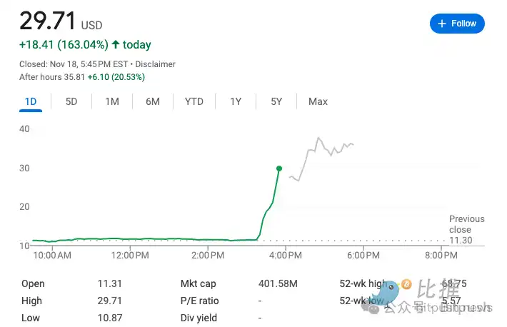 由特朗普持有多数股权的 Trump Media(纳斯达克股票代码 DJT)在报道发表几分钟后飙升两位数。该公司运营着 Truth Social 应用程序,收盘上涨逾 16%。Bakkt 因波动性过大而经历数次熔断,收盘飙升超过 163%。