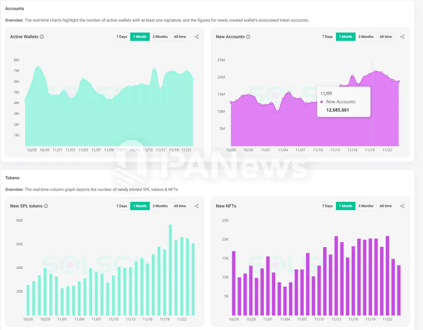 Solana 链上数据 11 月迎来成倍增长
