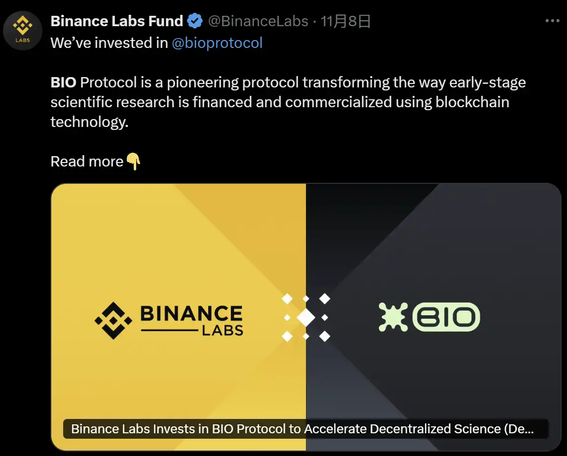 随后又沉寂了好久,直到今年 BN 宣布投资 Bio,包括在曼谷 CZ 和 V 神的一些关于 Desci 的一些动作,这里就不再赘述了。因为这些契机今年 Desci 的概念才重新火了起来。Desci 绝对属于比较厉害的一个叙事,只不过这个叙事是「顶流」推出来的而不是从群众里自然发酵的叙事。这样强推的概念就不太好说了。