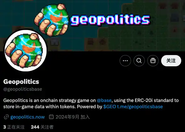 Geopolitics 是一款 Base 上的策略游戏,使用 ERC-20i 标准将游戏内数据存储在代币中
