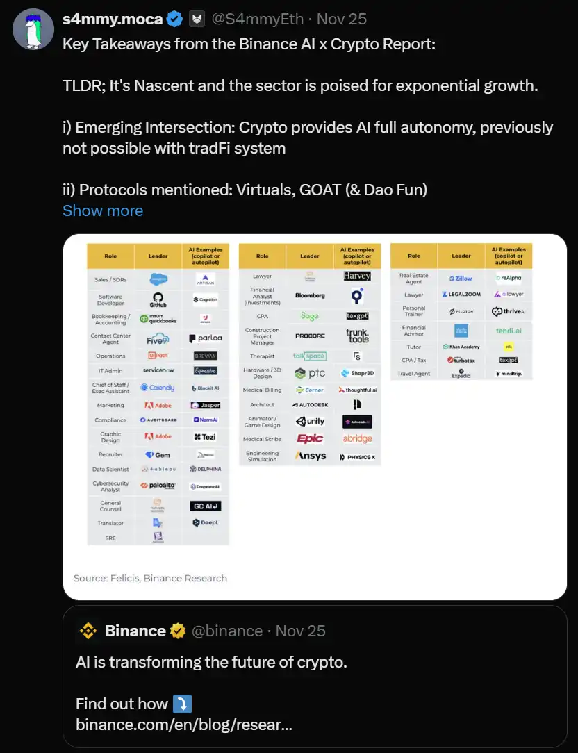 ·nvidia 在财报中提到代理 AI,AI 币暴涨
