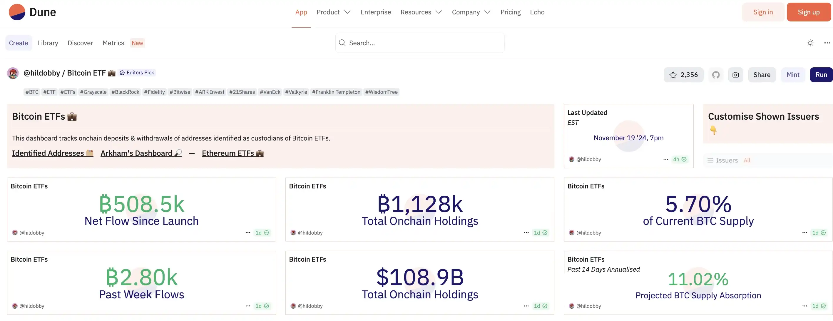 早在 10 月下旬,Ripple CEO Brad Garlinghouse 就曾发文表示,XRP ETF 是「不可避免的」。其主要依据来自于日益增长的比特币现货 ETF 增长份额。据最新数据显示,美国比特币现货 ETF 链上总持仓量突破 112 万枚 BTC(约为 112.8 万枚 BTC),占当前 BTC 供应量的 5.7% ;链上持仓价值达 1089 亿美元。