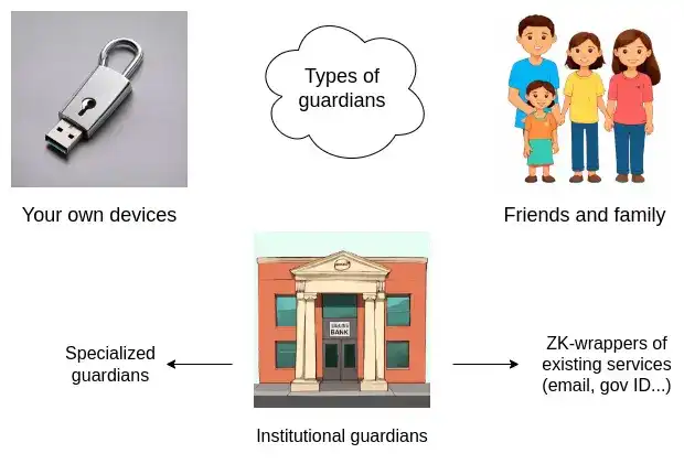 我对此的首选解决方案,超过十年来,一直是社交恢复和多重签名钱包,具有分级访问控制。用户的帐户有两层密钥:主密钥和 N 个监护人(例如 N = 5)。主键是能够进行低价值和非财务操作。大多数监护人需要执行 (i) 高价值操作,例如发送帐户中的全部价值,或 (ii) 更改主密钥或任何监护人。如果需要,可以允许主键通过时间锁执行高价值操作。