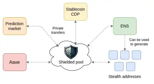 此外,钱包可以自动为用户参与的每个应用程序生成一个新地址(例如,defi 协议)。存款将来自隐私池,提款将直接进入隐私池。这允许用户在任何一个应用程序中的活动与其在其他应用程序中的活动取消链接。