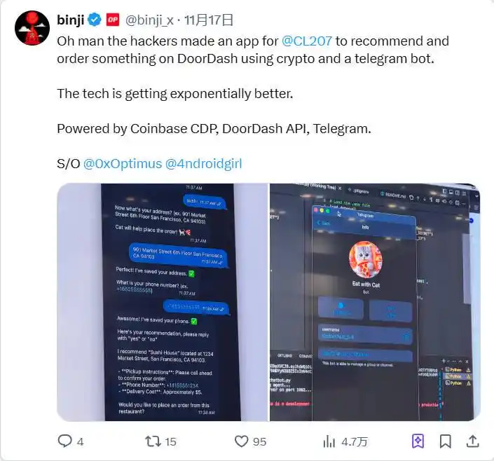 除了复杂项目外,代理也可以执行建立个人网站、创作艺术作品(如 zerebro)等简单任务,其应用场景具有无限可能。