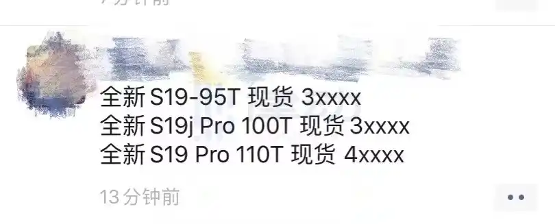 发稿时的蚂蚁 S19 线上报价,图片来自矿工