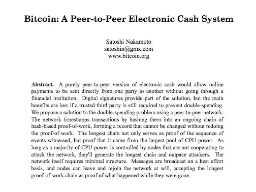 2008 年 11 月,一份署名中本聪的论文被发表在网络上,其标题为《比特币:一种点对点的电子现金系统》(Bitcoin: A Peer-to-Peer Electronic Cash System)。论文中详细描述了如何使用对等网络来创造一种「不需依赖信任的电子交易系统」。