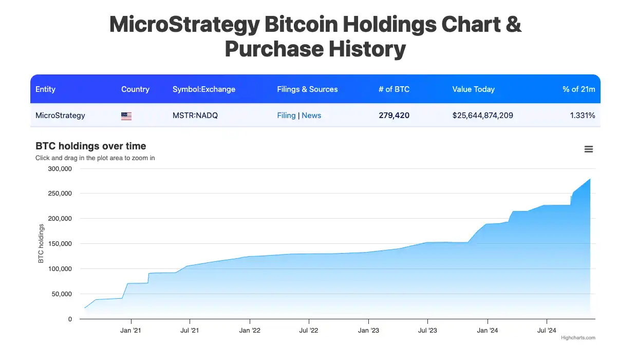 截止撰稿时间 11 月 21 日,MicroStrategy 的比特币持仓也再创历新高: 331,200 枚比特币,购买均价 49,874 美元。