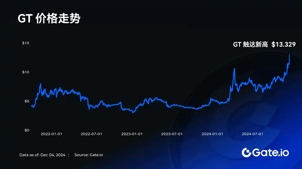 近期,加密货币市场延续强劲涨势,推动整体市值不断攀升。其中,GT 表现引人注目,开启一波显著的震荡上涨走势。昨日 GT 价格触及 13.329 USDT 的高点,显示出 GT 在市场上的强劲势头,同时价格也创下历史新高。