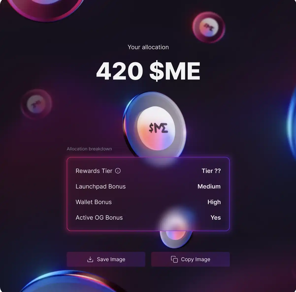 目前为止,笔者看到的最高等级为 Tier 1 ,最低等级为 Tier 14 ,但 ME Foundation 分配规则网址尚未清晰列出钻石数量和等级之间的关联。