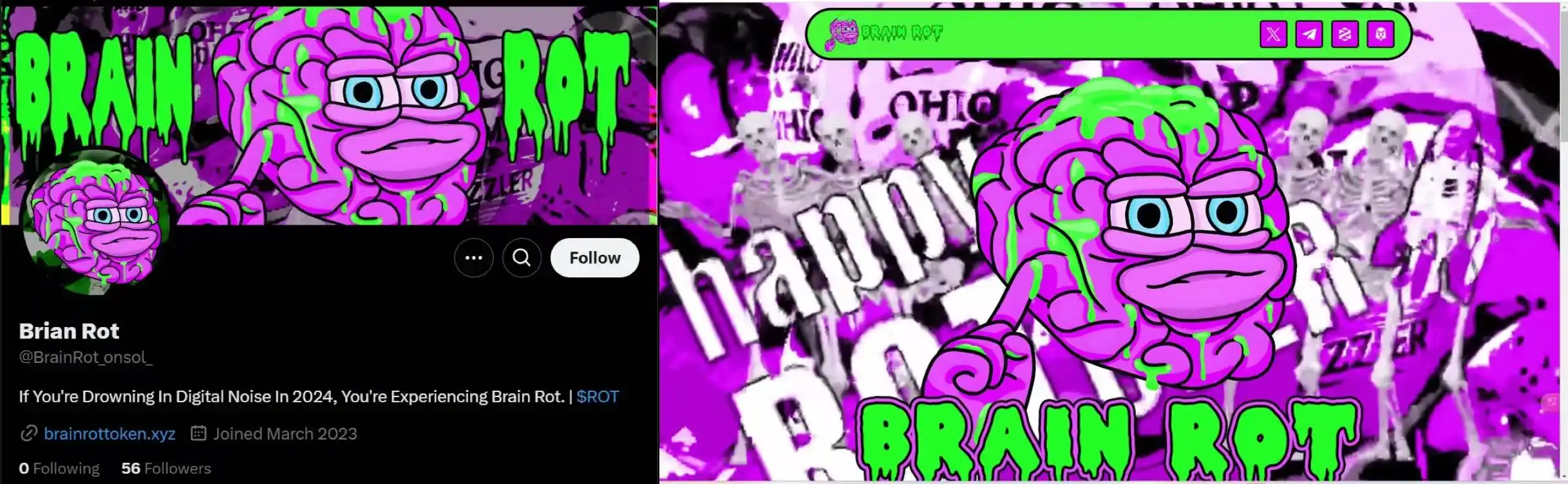 Rot 是一款代表「大脑腐烂」概念的代币,是为了反映当代人在过度消费社交媒体和在线内容时所面临的精神健康问题,随着人们在 TikTok 等平台上长时间刷各种视频导致大脑受到过量多巴胺刺激,认知能力下降,思维就会变得「糊状」的这一现象成为了 $Rot 的灵感来源。