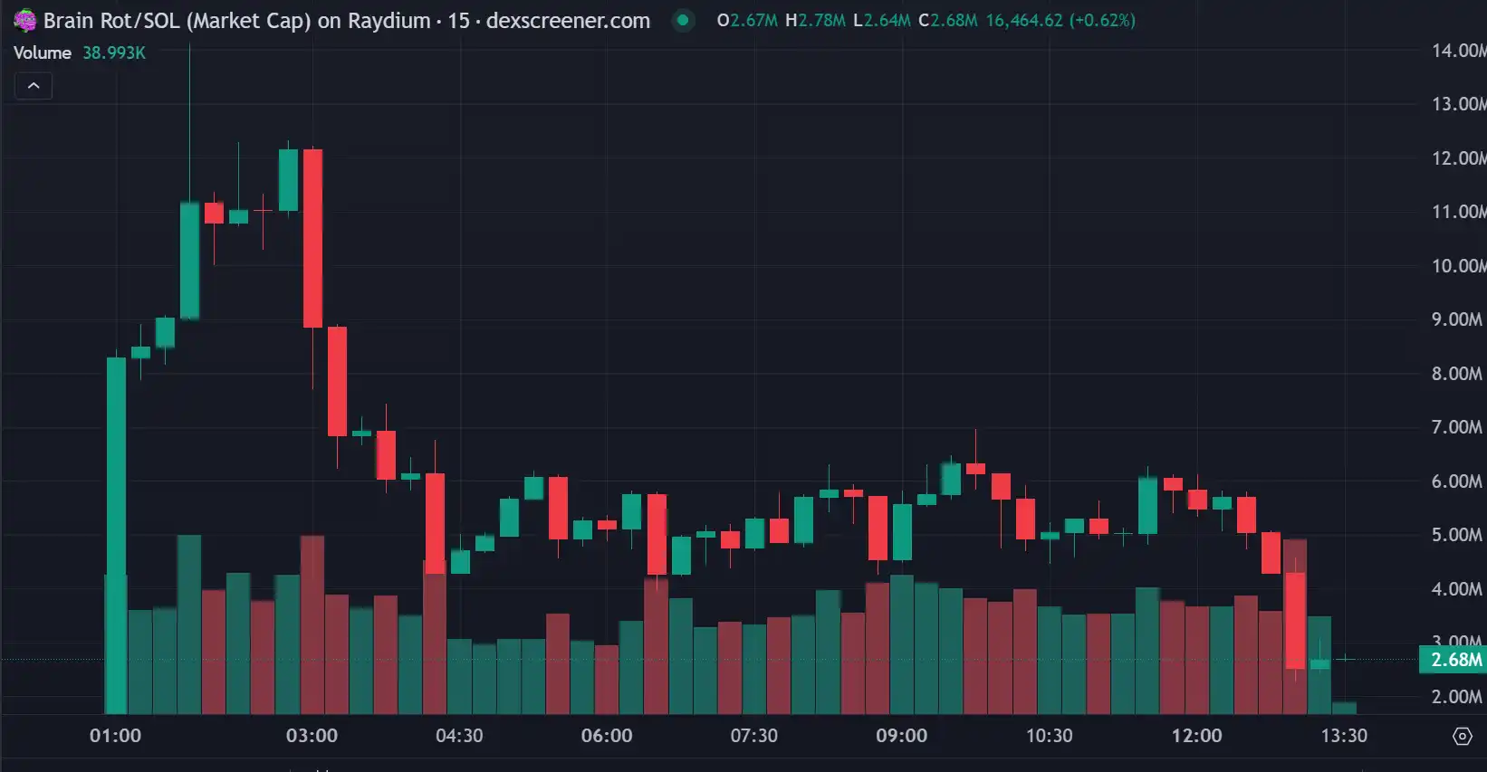 Rot 自上线两个小时内上涨了 45 倍至最高市值 1400 万美元而后下跌至 600 万美元附近,目前在 200 万美元附近徘徊。