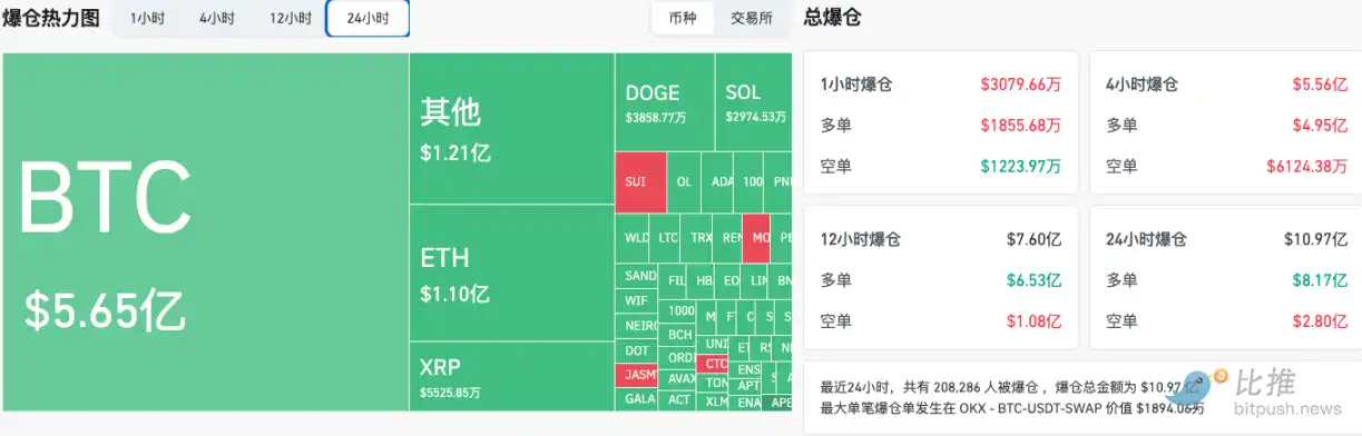 比推数据显示,在昨日触及近 10.4 万美元的历史新高后,比特币于北京时间 12 月 6 日 6:30 AM 左右突发巨幅波动,在几分钟内迅速插针至 9.1 万美元附近,导致市场大规模爆仓。数据显示,在过去 24 小时内,近 21 万投资者爆仓,总额超过 10 亿美元,多单为主。截至发稿时,BTC 价格回升至 9.7 万美元以上。此次插针并未波及其他山寨币。