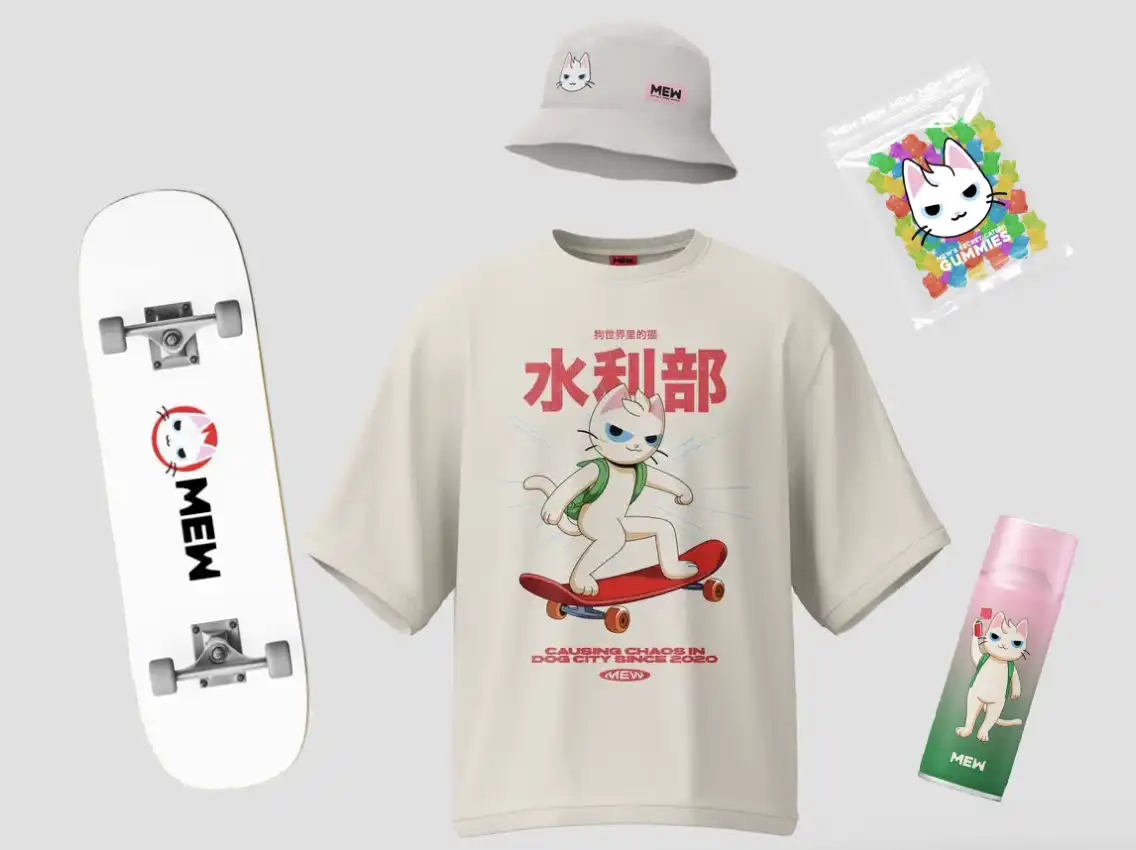 目前 MEW 上线了一众服装与周边产品,向用户提供了多样化的 MEW IP 商品,在新加坡的 TOKEN2049,MEW 的社区 T 恤和手办就十分受欢迎。