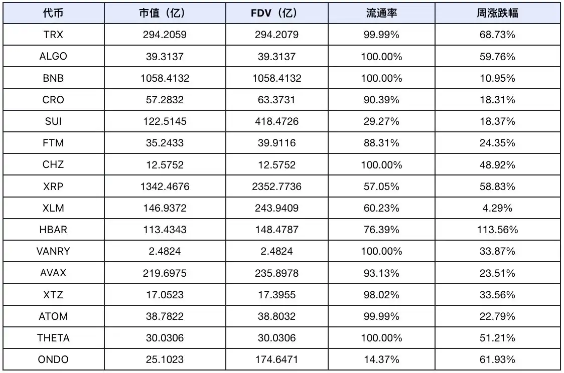 本周涨幅榜出现了板块集中特征,上涨代币大部分属于公链赛道。