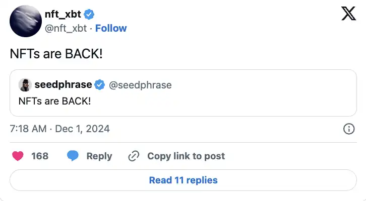 基于 Virtuals 平台发布,NFTxbt 将区块链信息与 Twitter、Farcaster 和主要 NFT 市场的实时信号结合,帮助收藏家和创作者获取市场洞察、追踪趋势并制定智能策略。从长远来看,NFTxbt 希望成为一个类似 PleasrDAO 的 DAO,帮助用户以公平和透明的方式分享与策展 NFT。