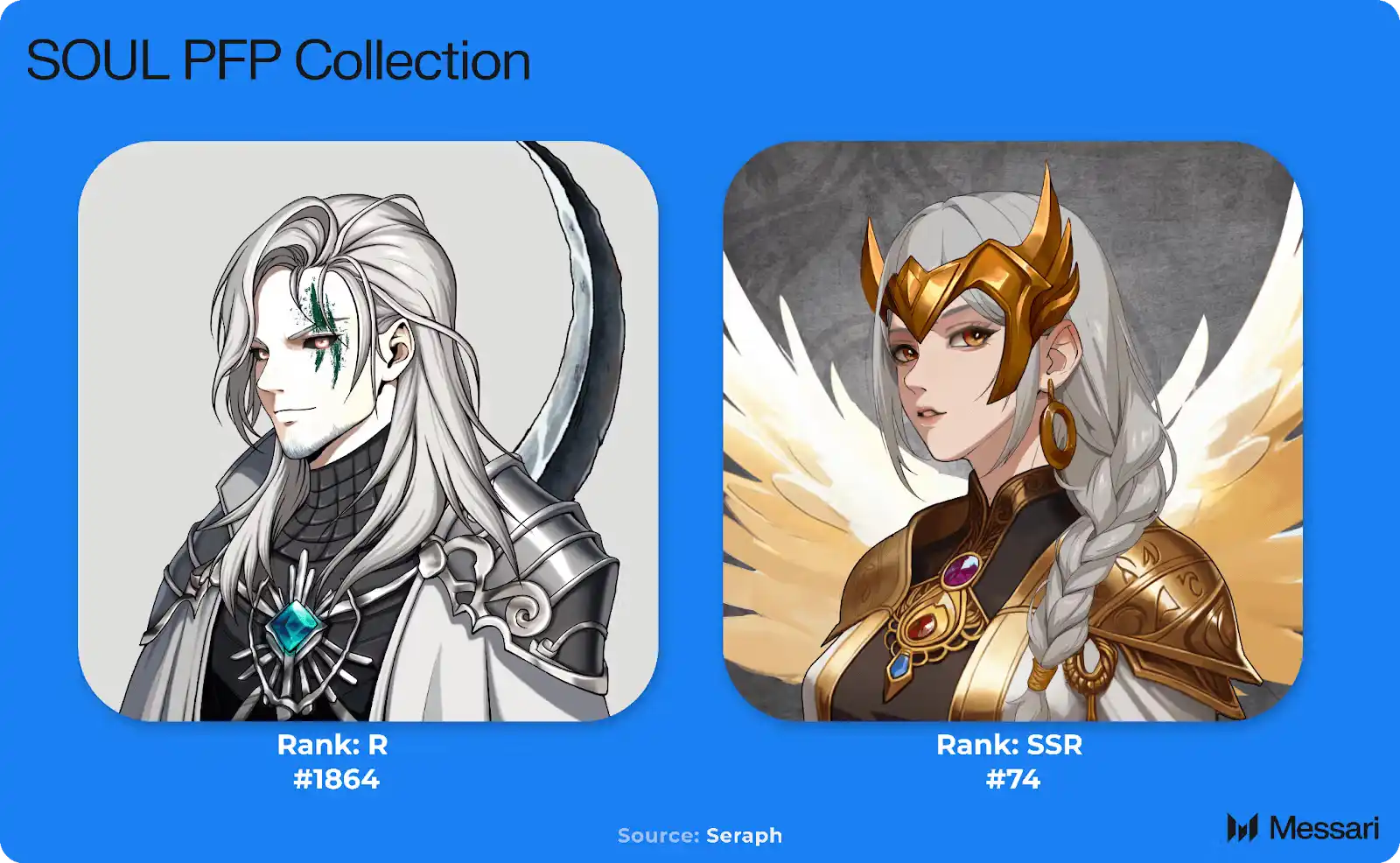 Seraph 还推出了一款名为 SOUL PFP 的头像系列,共包含 6,000 个 NFT,其中 500 个为超级稀有(SSR),其余为稀有(R)。持有该系列 NFT 的玩家是核心玩家之一。