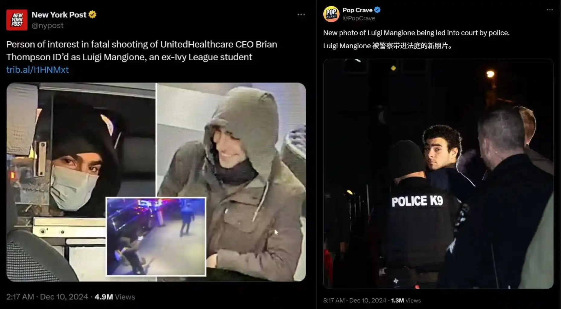 最意外的是 Mangione 还是一位来自富裕家庭的常春藤盟校毕业生,拥有宾夕法尼亚大学的计算机科学学士和硕士学位。网友们认为这起事件不仅仅是一起谋杀案件,它还涉及到多个社会层面的深刻问题,包括经济不平等、教育背景和心理健康等,在 tiktok 上的热度也特别高,案件引发了各方媒体的广泛讨论,并且都在密切关注最新动态。