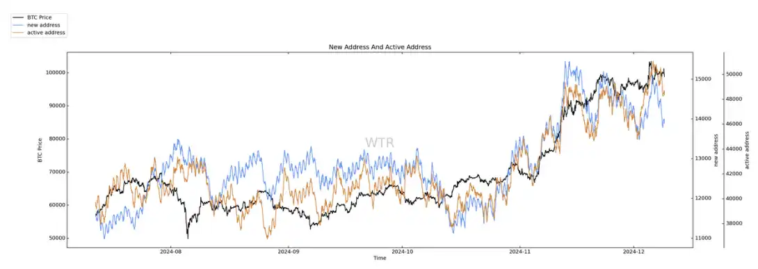 新增和活跃地址处于⾼位。