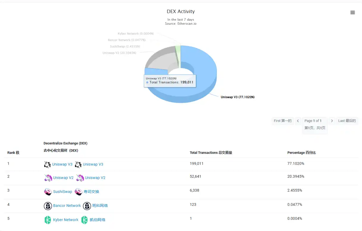 从各项数据来看,Uniswap 目前仍是以太坊无可争议的最大应用。用 DEX 的活跃度来看,UniswapV2 和 V3 合计占到以太坊主网 97% 以上的交易量。在以太坊的燃烧排行榜上,Uniswap 也长期占据榜一位置,截至 12 月 9 日,近 30 天内 Uniswap 共燃烧 6372 个以太坊,而以太坊转账则仅燃烧了 4594 个。