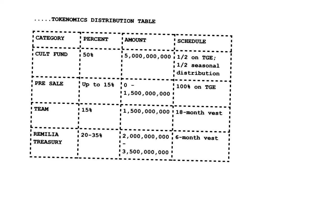· Remilia 国库分配占比达 20% ~ 35%,解锁期期为 6 个月。