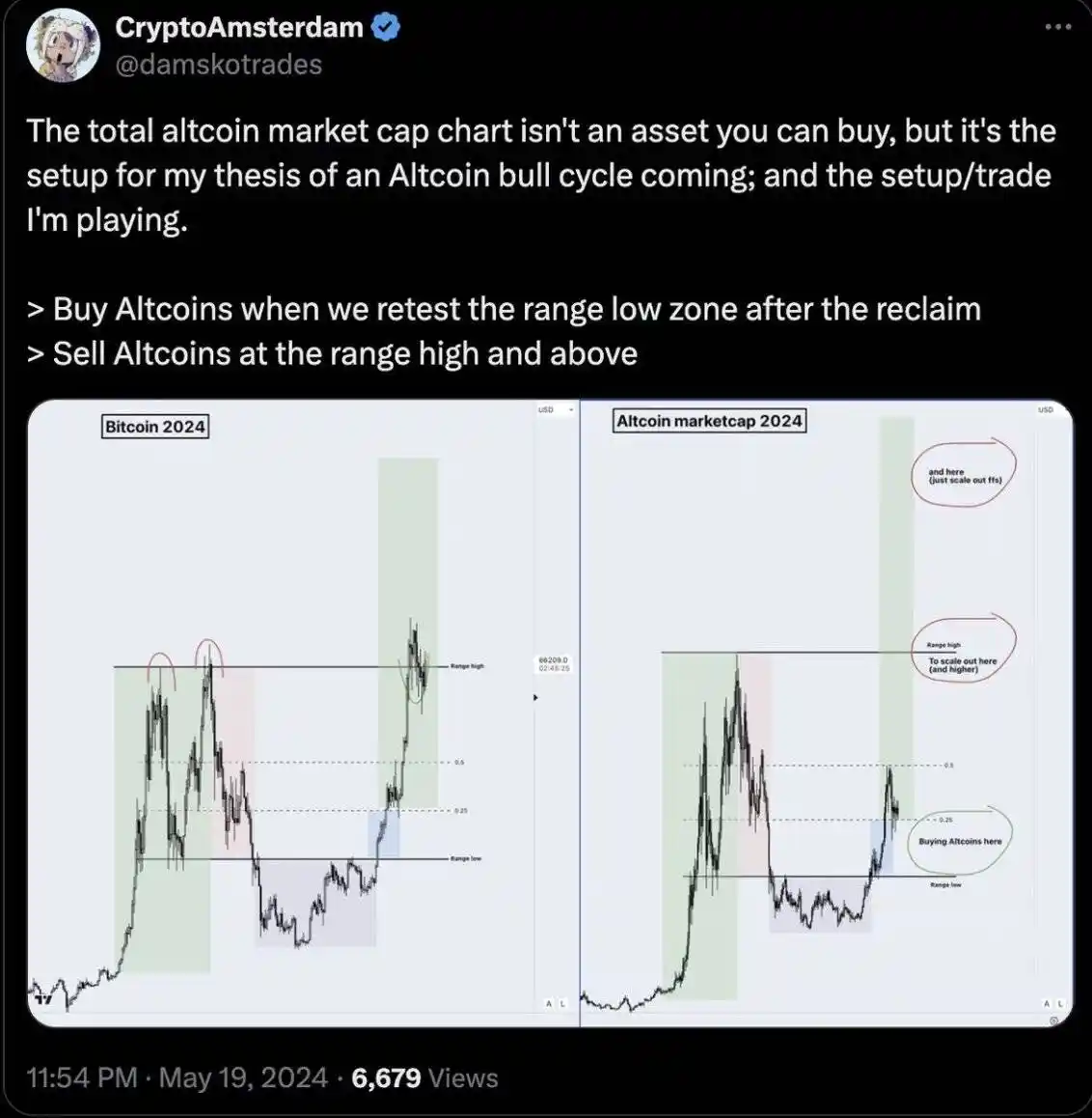 如前所述,阿姆斯特丹团队在过去 5-6 个月内已经在 Total 3 市值低点时积累了山寨币。