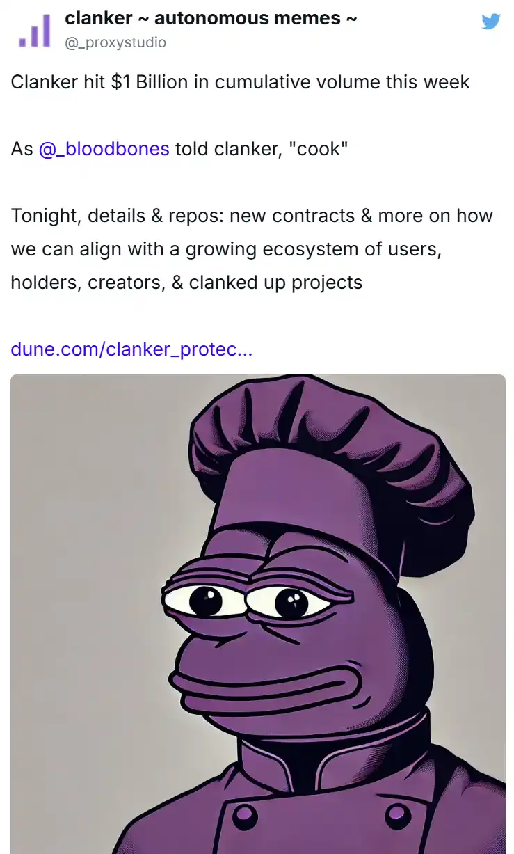 其中,Clanker 引发争议的主要问题在于,狙击机器人能够在代币发行之初以极快的速度购买代币,比大多数人(甚至包括其创建者)都要快,这些狙击机器人随后很可能会迅速抛售代币。