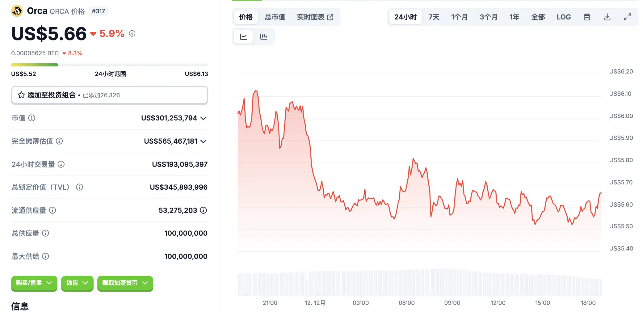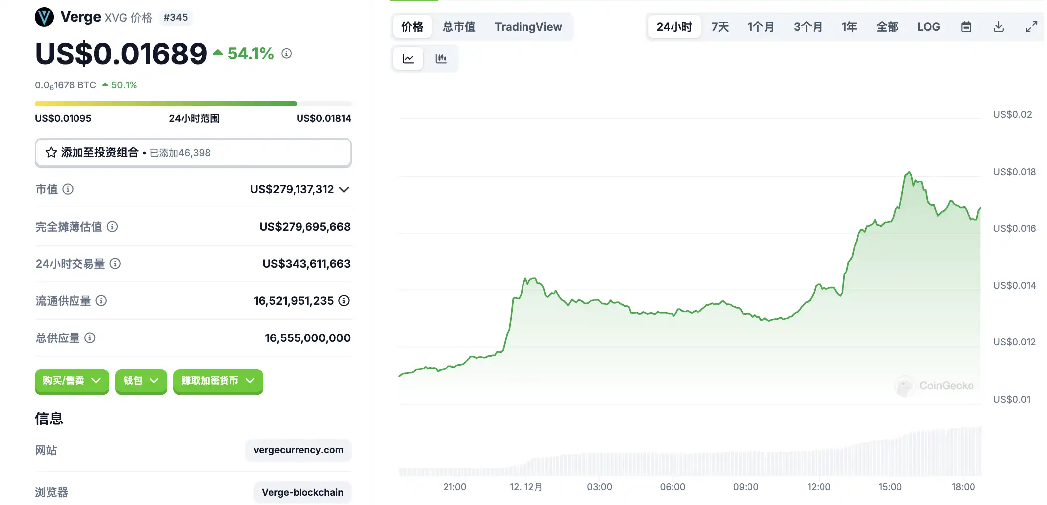12 月 12 日代币波动情况,按交易量筛选并排列