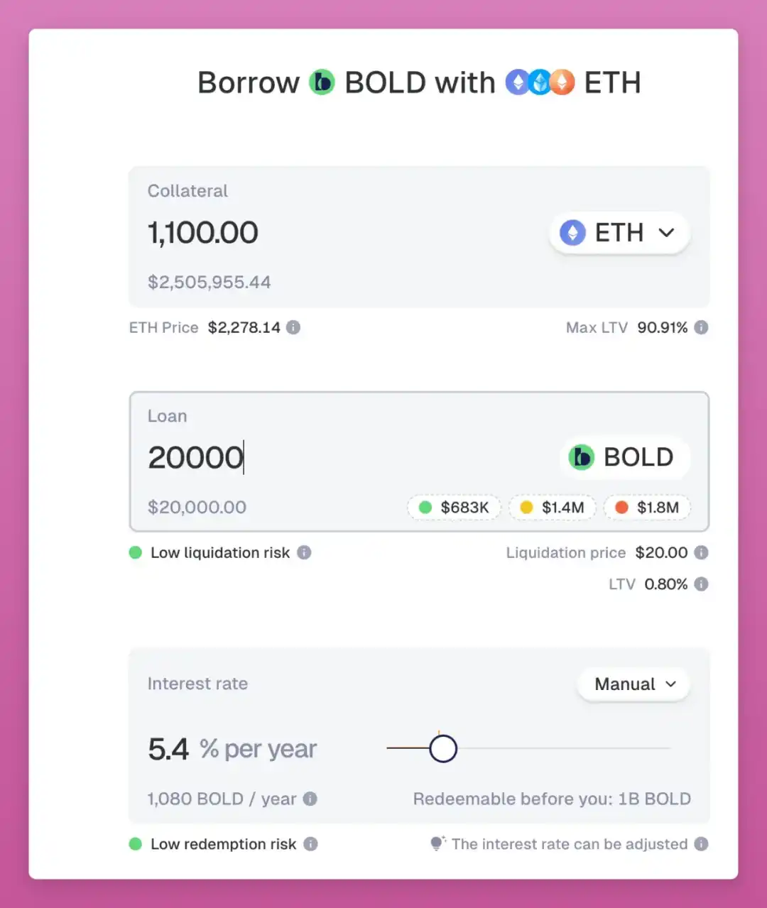 如果 $BOLD 跌破 1 美元,套利将鼓励赎回 ETH。
