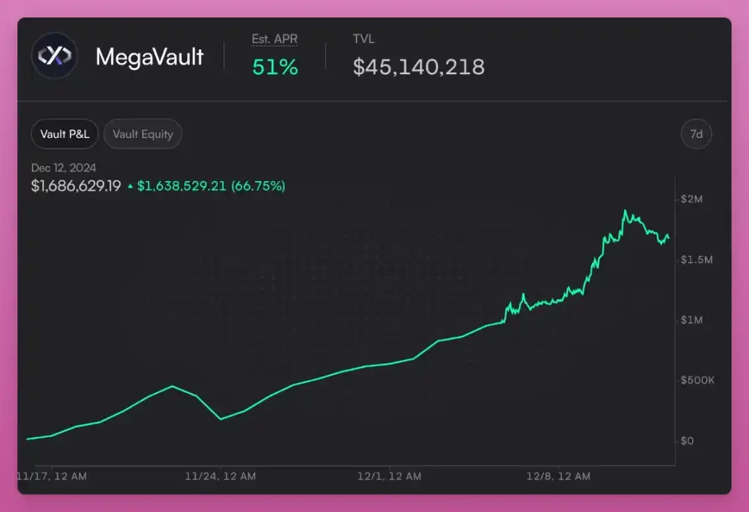 MegaVault 是该系统的核心,通过汇集 USDC 为所有市场提供流动性。
