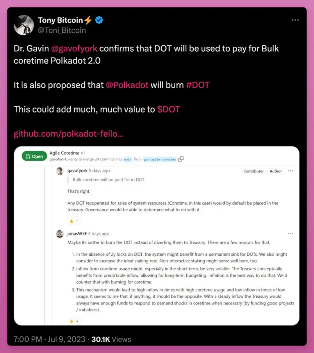DOT 一个月内上涨了 75%,有什么原因吗?