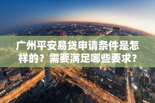 广州平安易贷申请条件是怎样的?需要满足哪些要求?