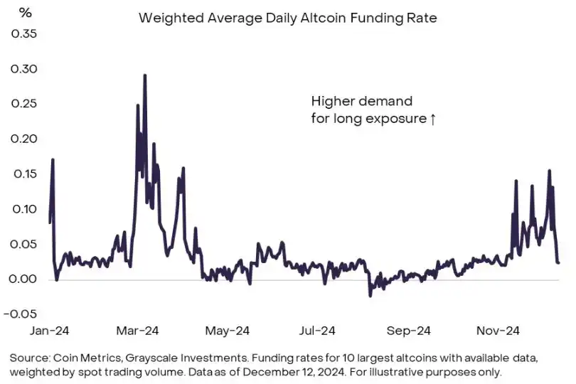 图 8:资金费率表明山寨币的投机程度处于中等水平