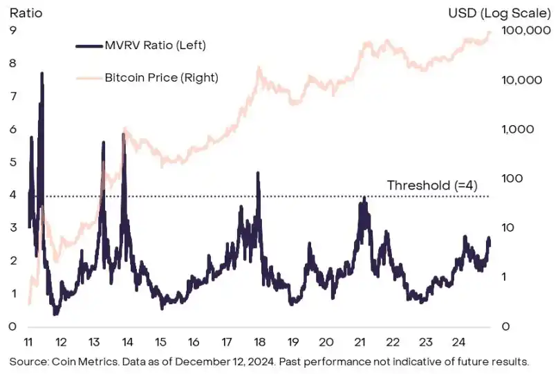 图 4:历史上,比特币 MVRV 比率的走势