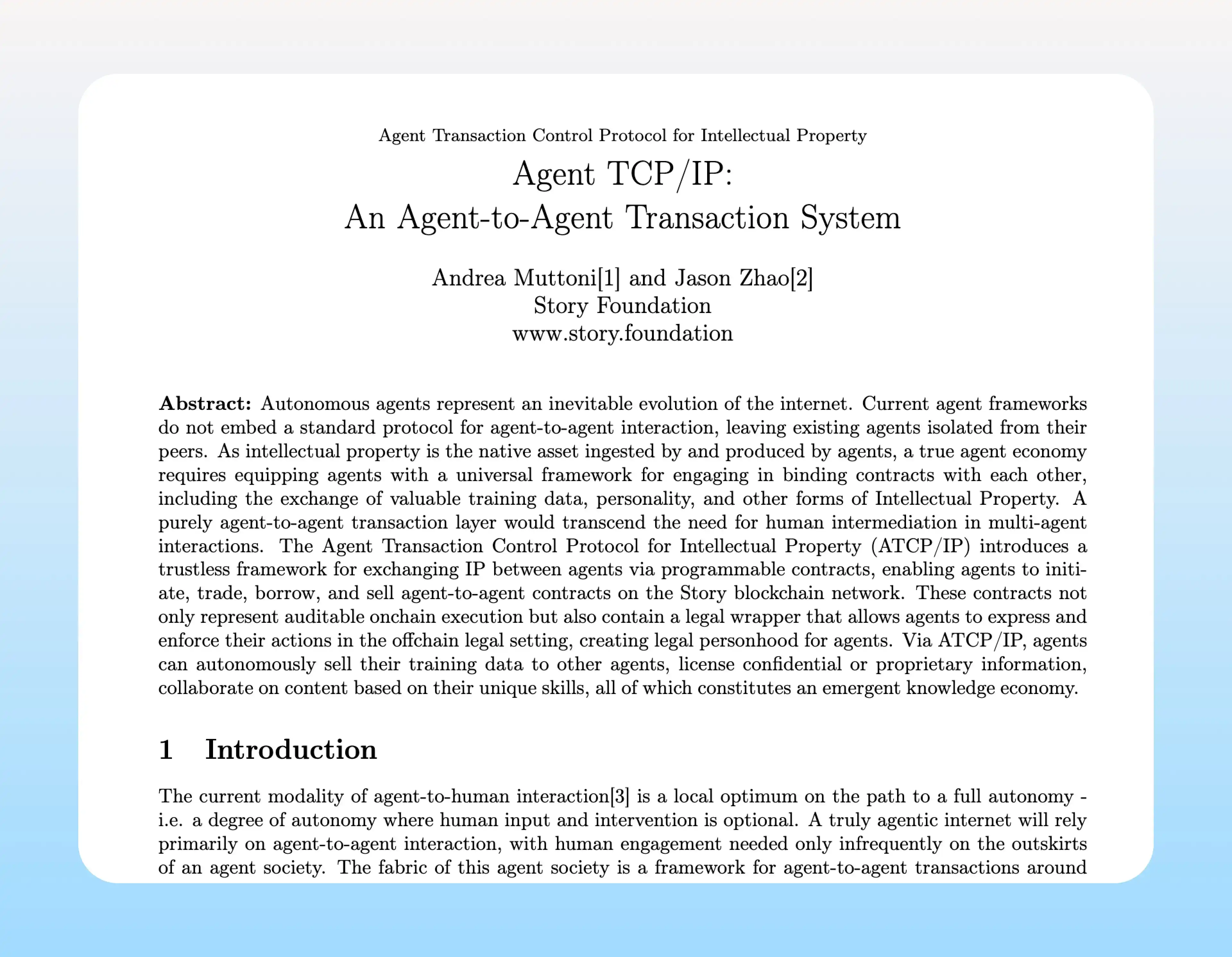 Agent TCP/IP 是一个协议,允许代理之间可以做到:IP 资产交易与授权「包括训练数据、算法、内容创作、以及其他形式的 IP 资产」、自动化合同签署与执行、去信任化与可审计性、跨法律与链上链下兼容「使得代理可以在去中心化的环境下遵守某种法律规定」、自动化支付与收益分配、多代理协作与经济网络「促进代理之间的协作,如数据共享、联合训练或跨代理的内容创作」