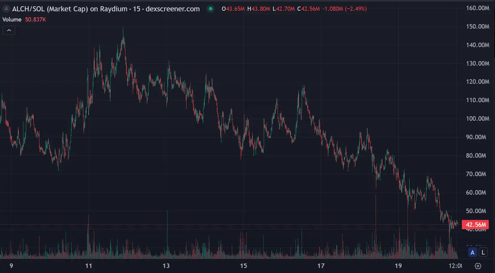 Alchemist AI 的最高市值曾达到 149.78M,但现在市值已降至 41.82M,交易量为 20.4M,代币价格呈震荡下行趋势。该项目的催化剂主要是持续的开发进展,代币的使用场景是推动高级模型的推出并且该项目有惊人的编码引擎,将进一步增强平台的吸引力。