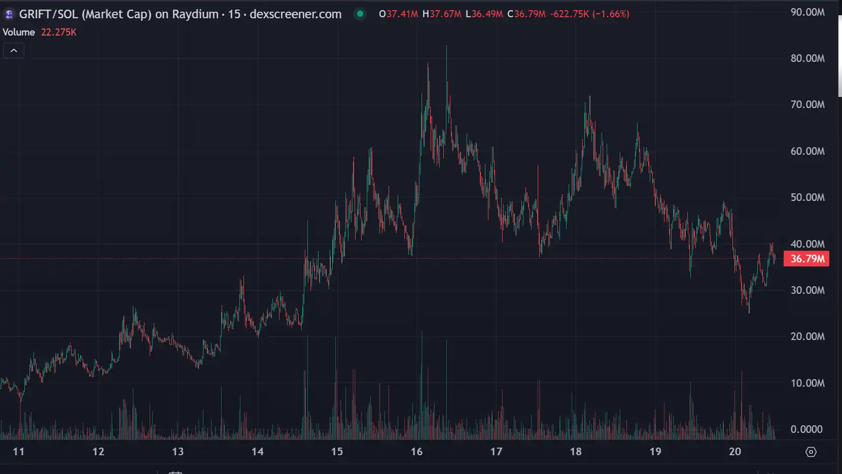 Grift 作为由 SphereOne 团队推出的 AI 代理代币,正在重新定义 Meme 交易的格局。当前,Grift 的交易量为 9.8M,市值曾一度飙升至 82.25M,在过去 10 天内经历了较大的波动。项目的催化剂来自于稳步发展的合作伙伴关系与持续推进的技术进展,尤其是其代币回购机制的引入,为市场注入了新的活力。