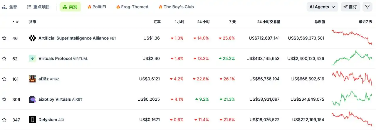本周大盘处于下跌趋势,各个赛道均处于下跌状态,虽然 AI Agent 赛道的大部分代币价格在本周也处于下跌态势,但是在市场中的讨论度是最高的。之前 AI Agent 的市场关注点大部分集中在带有 AI Agent 的 Meme 代币项目中,现在慢慢向 AI Agent 基础设施建设方面转移。