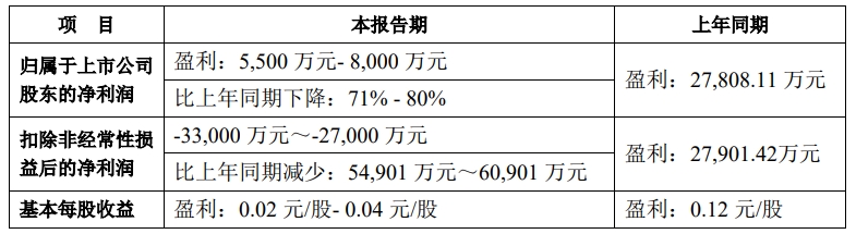 科大讯飞7月10日晚间发布公告,预计上半年净利润5500万元-8000万元,同比下降71%-80%,扣非后净亏损2.7亿元-3.3亿元。