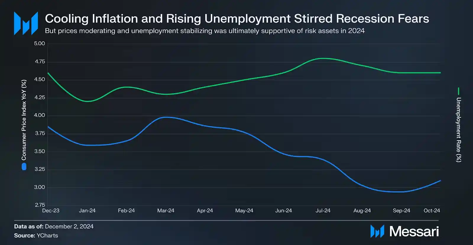 2024 年经济走势打破了多数悲观预期,美国经济展现出超预期的韧性。美联储得以在 9 月和 11 月分别实施 50 和 25 个基点的降息,实现了相对平稳的政策转向。