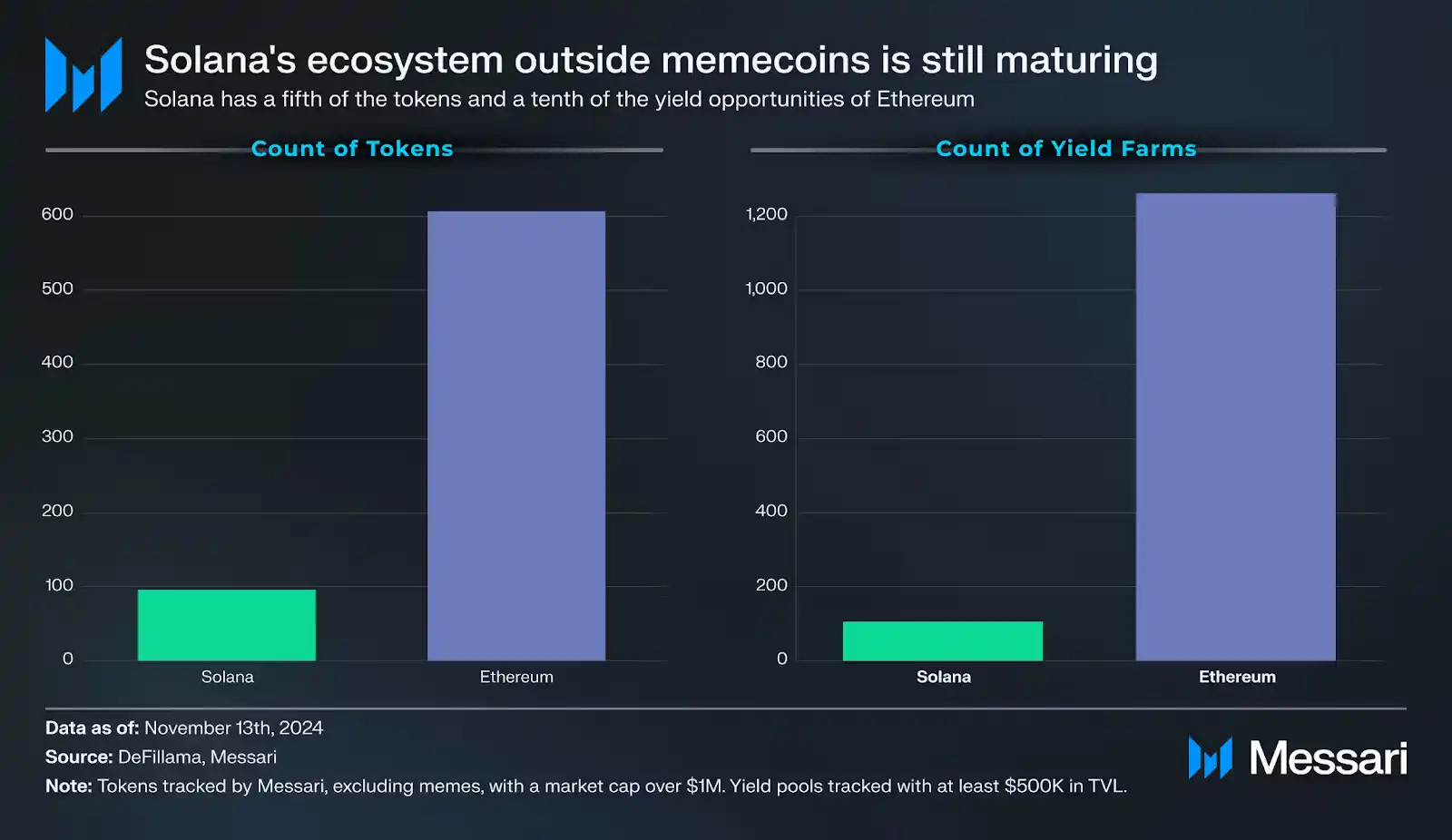 · 将自己定位为投机场所,尤其是通过 Memecoin 交易。生态系统钱包的无缝用户体验,以及 Pump.fun 和 Moonshot 等平台,使代币的发行和交易变得比以往更容易;