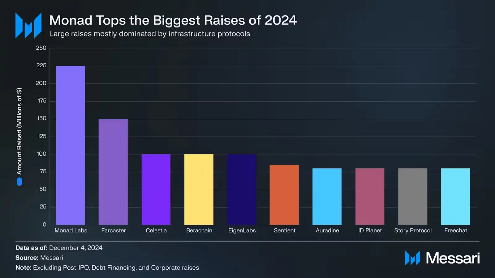 · Farcaster 和 Freechat:分别融资 1.5 亿美元和 8000 万美元,表明社交领域持续受到资本关注;