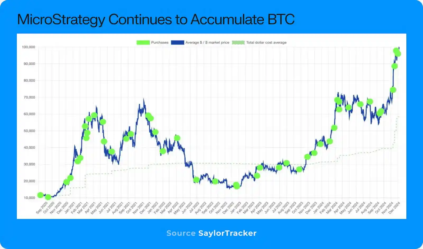 · MicroStrategy 继续大规模购入,最新一次在 12 月 2 日至 8 日期间购入 21 亿美元比特币,前持有约 42 万枚比特币,仅次于 Binance、中本聪和 ETF 发行方;
