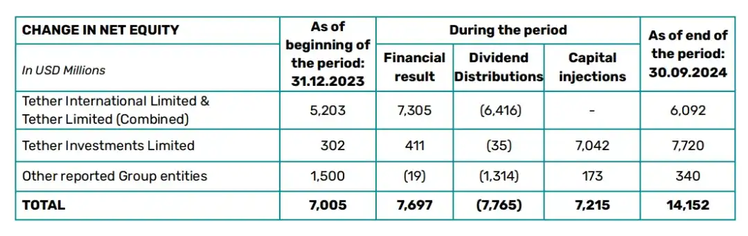 Tether 的 2024 年前三季度利润 来源:https://tether.io/news/tether-hits-7-7-billion-2024-nine-month-profits-102-5-billion-in-u-s-treasury-holdings-almost-120-billion-usd₮-circulation-and-an-over-6-billion-reserve-buffer-in-q3-2024-attestation/
