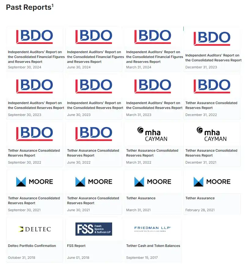 Tether 过往的透明度报告 来源:https://tether.to/en/transparency/?tab=reports