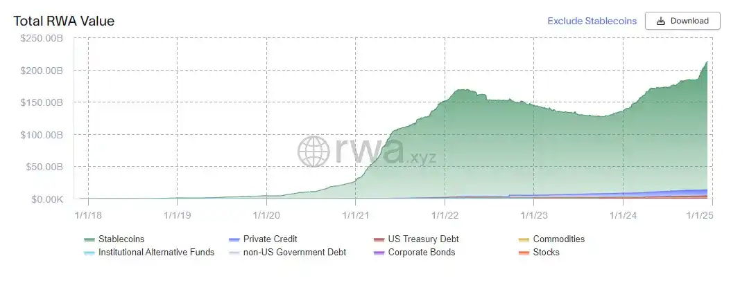 RWA 总市值(含稳定币) 来源:https://app.rwa.xyz/