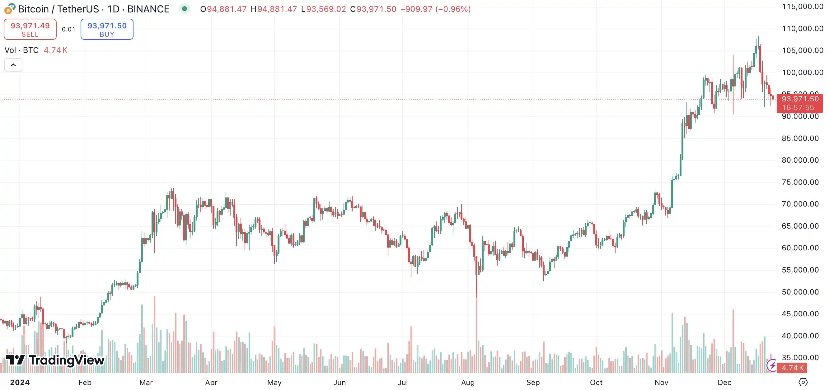 2024 年比特币价格走势图;图源:TradingView